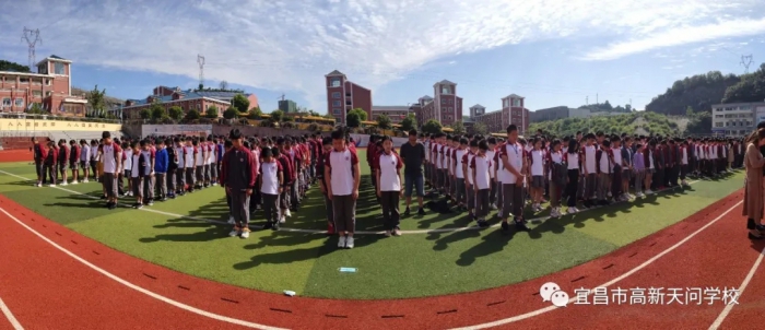 “多少男儿血泪中,为我中华一脉同”。9月18日,高新天问初中开展了“勿忘国耻 爱我中华”主题教育活动,全体师生默哀一分钟,以此表达对在抗日战争中为国家、民族独立而牺牲的先烈的敬意。