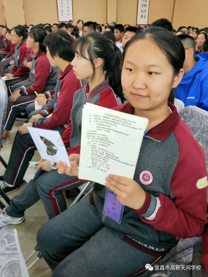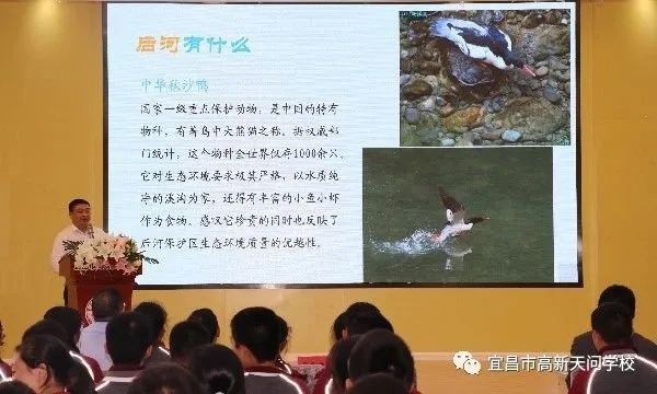 会上,毛业勇局长以《走进后河 探秘自然》为题,从后河是什么、后河在哪里、后河有什么、我们能为后河做什么四个问题为切入点,采取现场讲课、有奖问答、现场接受学生提问等方式结合,为高新天问全体师生送上一堂生动活泼的自然教育课。