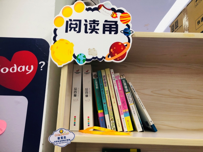 在这里,你可以用你最喜欢的方式阅读,坐着,站着,倚靠着。。。这里有大朋友阅读的教育类书籍,也有小朋友可以借阅的杂志类、文学类、英语类书籍,让教室浸满书香是我们期待的愿景。