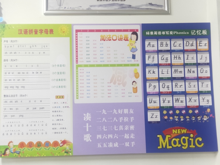 在教室老师的桌子上孩子们还有个特殊的好朋友——“小爱”机器人。每天早上孩子们一进教室就会听到“小爱同学”播放三字经,孩子们就会迅速养成自主早读的习惯。课间活动只要听到“小爱同学”的声音孩子们也会迅速做出反应,快速回到座位拿出书本做好课前准备。在教室评价区域的旁边有语数英的学习策略,孩子们很关心自己海洋币的情况,每天看看评价区看看自己有多少海洋币也能看到旁边的策略区。哪怕不经意间看一看,也可以加深孩子们对语文拼音,数学加法口诀,英语字母的印象,帮助他们无意识的记忆。