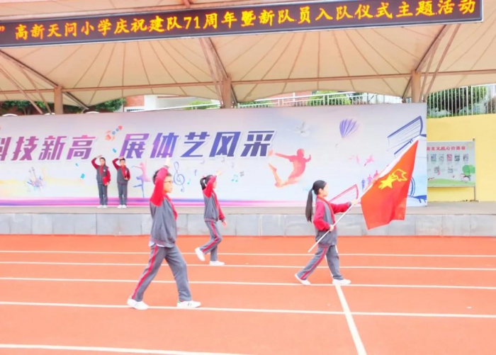 金秋十月,少先队员们迎来了自己的节日——中国少年先锋队建队71周年纪念日。为庆祝中国少年先锋队建队71周年,增强少先队员的光荣感和归属感,进一步加强学校少先队组织的建设,2020年10月13日,高新天问小学全体师生齐聚操场举行庆祝建队71周年暨新队员入队仪式主题活动。