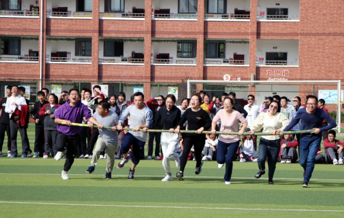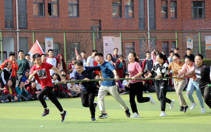 10月23日,在一年一度的学生体艺节之际,夷陵天问国际初中工会组织了一场教师趣味运动会。接力赛、竹竿跑、袋鼠跳,老师们在紧张的工作之余,彻底放松身心,在跑跳中体验速度与激情,在运动中重拾青春。同学们的加油与呐喊声响彻校园,处处洋溢着运动的喜悦和活力。