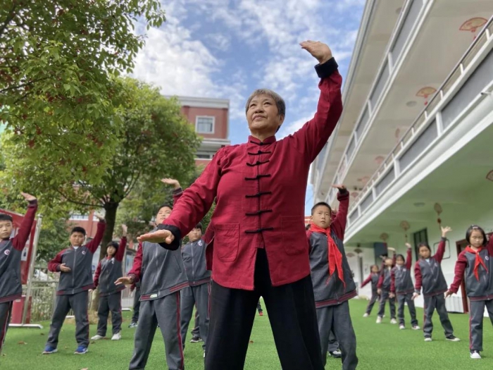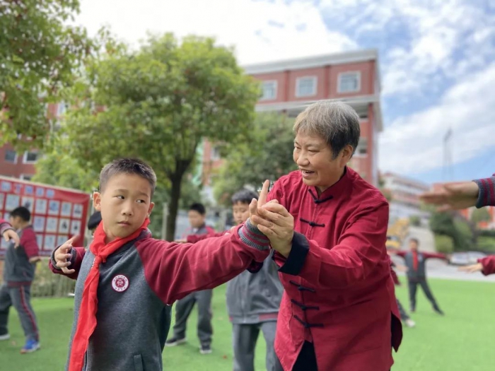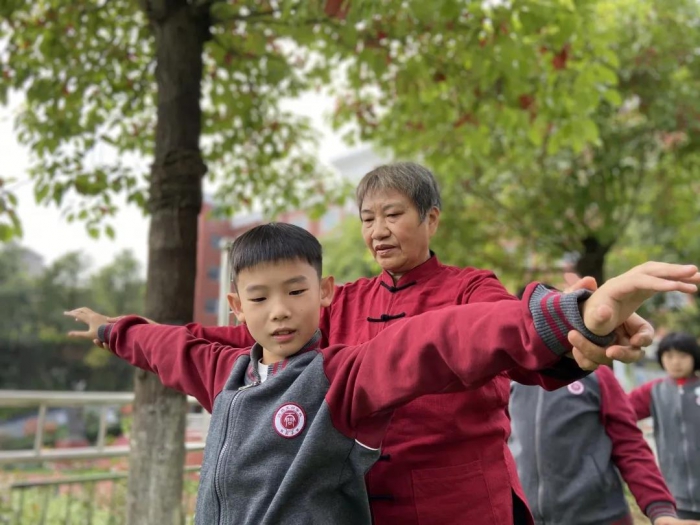 在天问书院小学,太极拳社团是孩子们最喜欢的社团之一,由著名太极拳大师潘先姣女士担任指导教师。