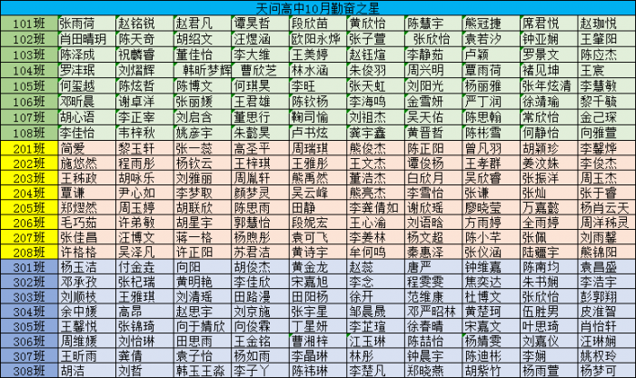天问高中10月勤奋之星名单已公布