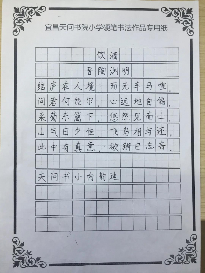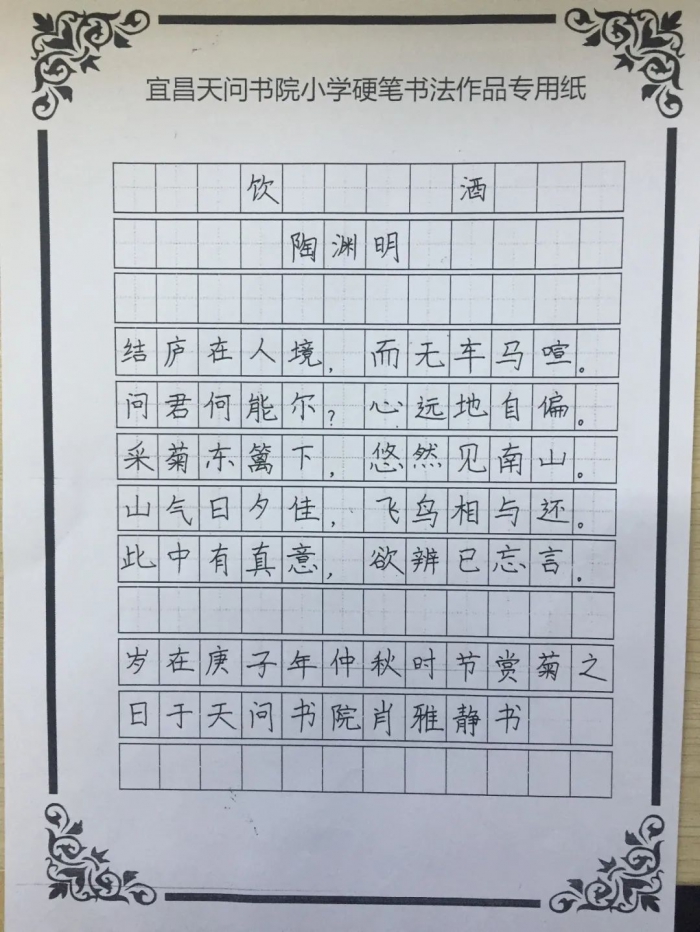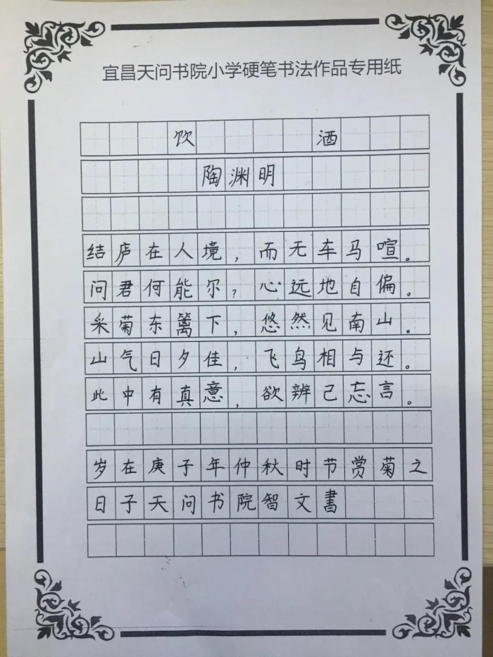 菊花以它傲骨、高尚坚强、高洁不屈的品格,给人以立志奋发的激励。书小学子们在书法老师的指导下书写一幅关于菊花的书法作品,一笔一划中尽染菊之品性,孩子们用书法艺术的形式感受菊花的魅力。