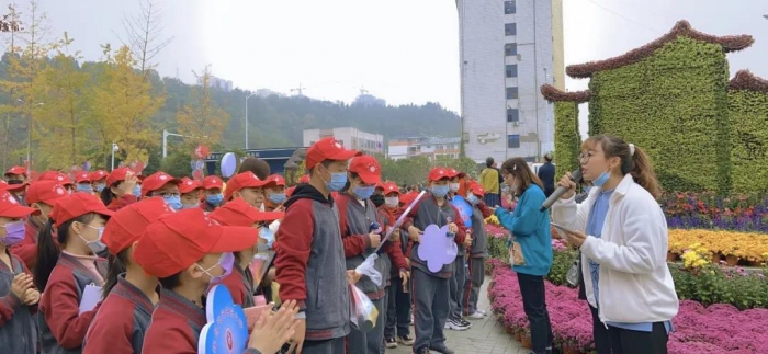 书院小学各班在语文老师的带领下学习有关“菊”的诗句,感受诗人们笔下“菊”的千姿百态及深层含义。“不是花中偏爱菊,此花开尽更无花.......”“冲天香阵透长安,满城尽带黄金甲.......”少年们在菊展上高声齐诵赞美菊花的诗句,铿锵有力的声音和菊香融为一体,吸引了众多前来赏菊的游人。