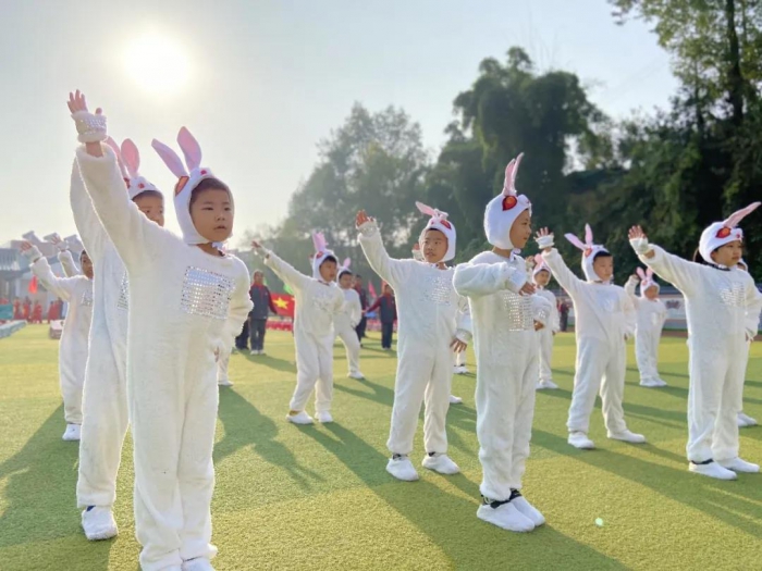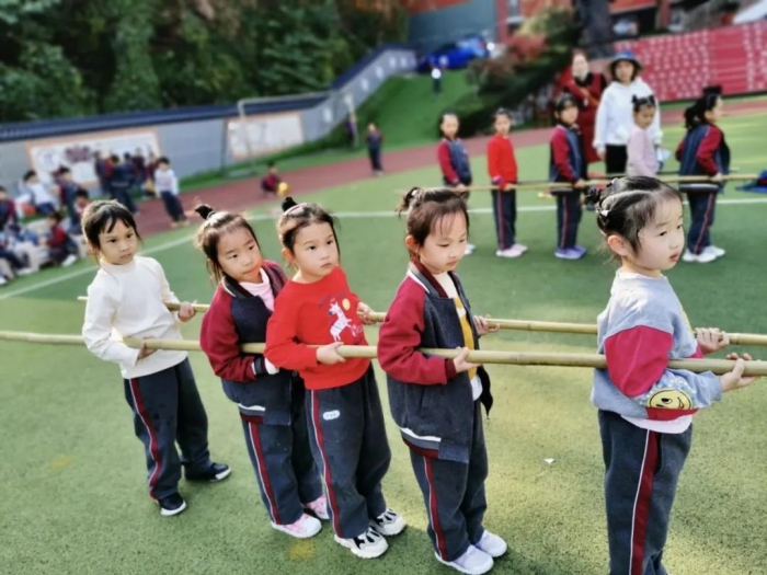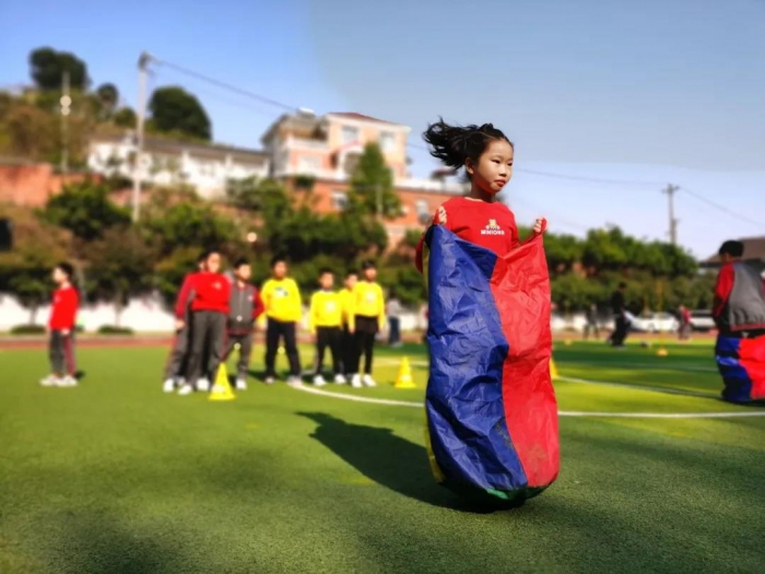 本次运动会分年段设置项目,根据少年们的身心发展特点,设计了涵盖速度、耐力、协调等身体素质的二十几项趣味竞技项目:韵律操比赛、袋鼠跳、呼啦圈、旋转跳跳球、滚轮胎、拔河……