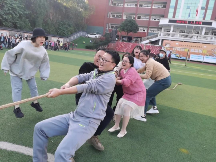 瞧,老师们也纷纷加入了运动员的队伍,向自己发起挑战!一边奋力拔河,一边淹没在孩子们的助威声中,让我们看到了他们平日里站在讲台前能文善武的另一面风采。