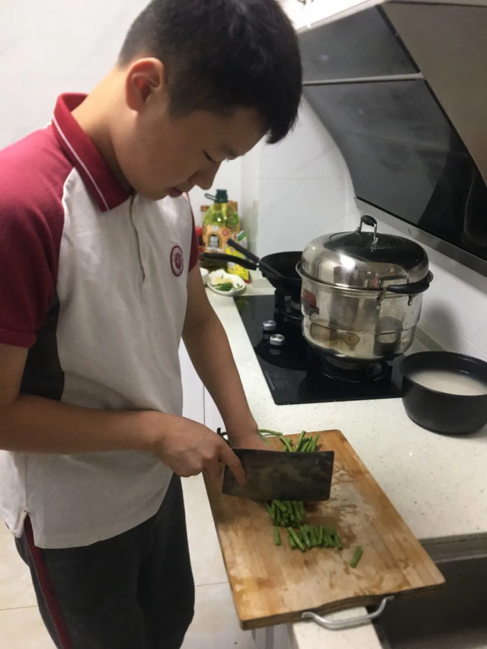 这得益于学校推行的“双休计划”。为践行自觉、自由、自主的理念,推进自主教育“511”行动计划落地,(“5”即在周一到周五聚焦自主课堂和自主班级,“1”即双休居家自主学习日,“1”即双休实践活动日),学校制定了“自主教育 2.0行动计划”之双休行动方案。内容分为三项:一是自主学习,包括学生和家长共同制定双休活动规划,做好每周反思总结;参加线上学科辅导;自主完成学科作业;亲子共读。二是实践活动,其中必选项是家务劳动、体育锻炼;自选项是观看一部有意义的电影或纪录片、拜访长辈和亲朋、在家长的引领下参与志愿者活动。三是活动反馈,实践活动通过观后感、音频、视频、照片等方式打包传给班主任。