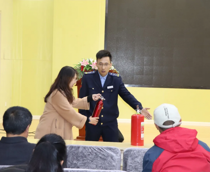 王教官还介绍了新型消防器材的种类及使用方法,并让教师代表上台,详细地指导老师如何操作。现场,老师们踊跃提问,积极互动,求知氛围浓厚。