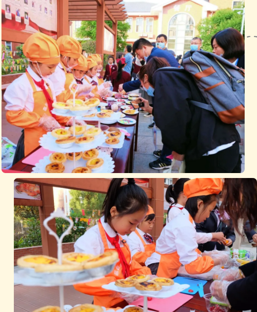 参观现场,学校展示了“新闻直播站”(前期拍摄脚本、现场参观采访、后期播稿整理,均由学生自主完成)、“橙子味厨房”(学生了解简单的烹饪技巧,学习制作各种美食,活动现场,学生亲手制作水果拼盘和蛋挞)、“编织社团”(活动现场,学生亲手编织各式各样的手链、丝网花)的日常操作。