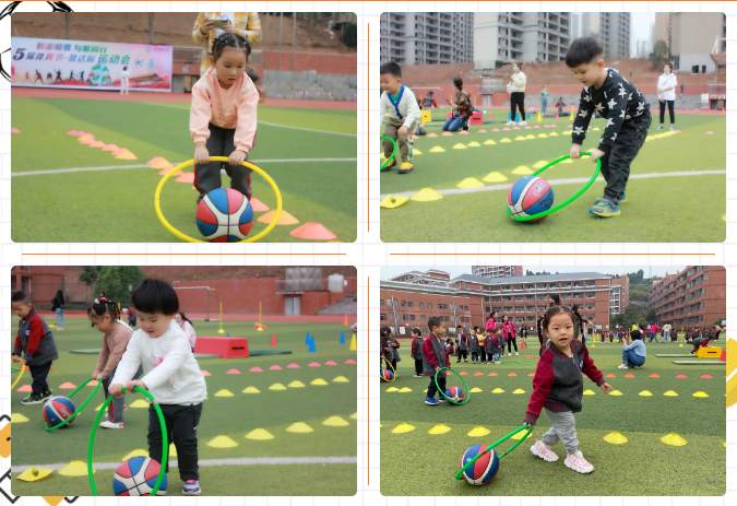 我们是大班的娃娃啦,这一年,我们长大了,不仅个头变高变大,本领也增强了!这不,在运动会中,充满挑战的团体对抗赛来袭。4人接力赛,6人齐心竹竿跑,7人协力毛虫爬……还有行走的圈圈、奔跑的篮球,趣味横生的团体对抗赛,考验的不仅仅是我们走、跑、攀、爬、跳的运动力,更是我们和小伙伴儿之间心有灵犀的完美合作力,还有为班级努力的集体荣誉感。