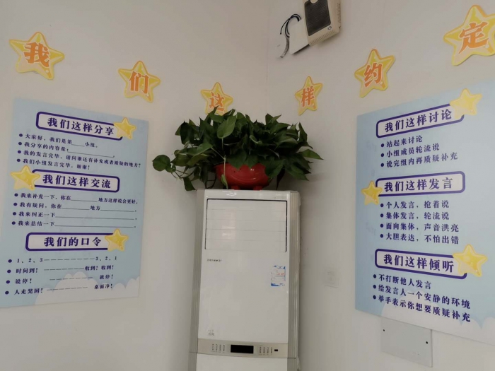 苏里姆林斯基说过:我们的教育应当使每一堵墙都会说话。我们结合本班的自身情况,充分合理地利用教室空间进行精心的设计和布置。