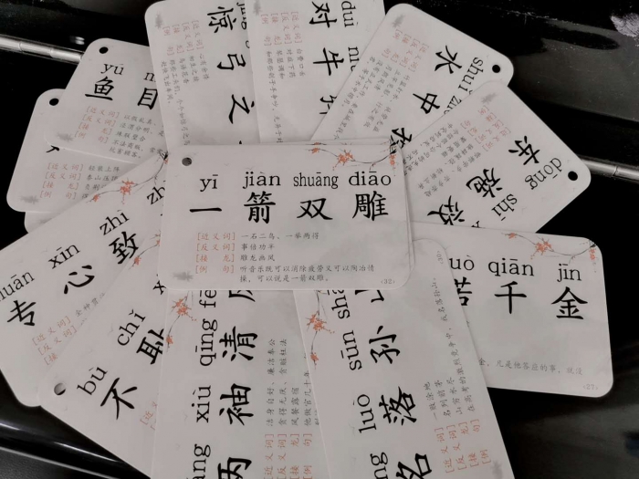 8. 教室后展板:每周表现优秀的同学下发成语卡片,背诵后贴在展板上。
