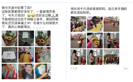 在为孩子们悉心的付出感动之余,家长们也传来了充满温暖的反馈。以下是家长朋友圈的截图,满满的幸福感溢出了屏幕。