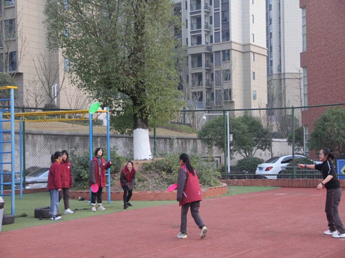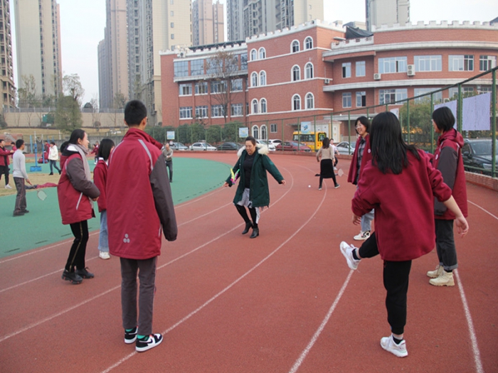 每天下午15:45~16:20,伴随着轻快的音乐声,全体学生迅速在操场集合,自编操、拔河、羽毛球、乒乓球、踢毽子、扔飞盘等多种形式的体育活动同时展开,同学们精神抖擞,活力四射。
