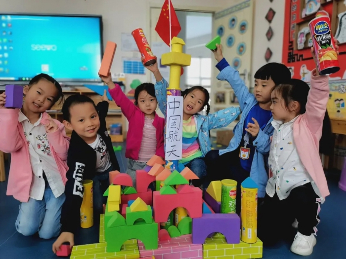“驼背公公,力大无穷,爱驮什么?车水马龙。”非常形象的像我们展示了桥梁的外形特点,孩子们也是一步步用自己的方式去表现它。在这个过程中,孩子们会尝试失败,但更多的是在失败中去总结原因,寻找解决的办法,我想这样的游戏才会真正让孩子们玩中获益!