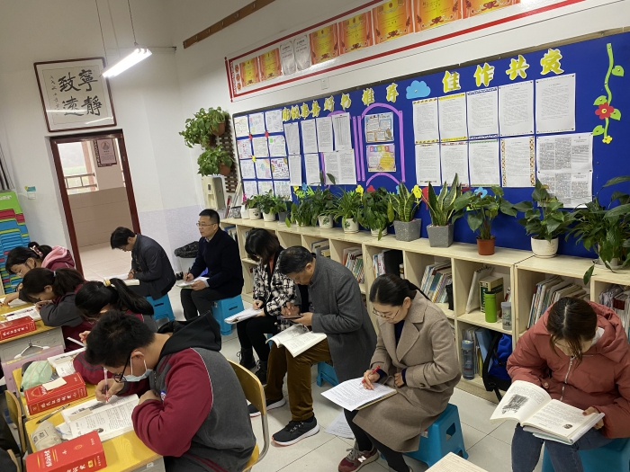 能用众力,则无敌于天下;能用众智,则无畏于圣人。国初的语文组大家庭总是能够将团队力量发挥到极致。在教研组长屈定香老师(大家都亲切地叫她“屈大姐”)的带领下,每一位老师都发挥自己的特长,帮我从各个角度精心打磨这堂课:善于和学生拉近距离的金宇老师教会了我不少暖场技巧;刚刚获得过优质课竞赛一等奖的郑甜甜老师将全部实操经验耐心传授于我;永远站在哲学高度上的吴永东老师为我梳理了课文作者近六十年的人生历程;兼具才华与颜值的王友现主任,告诉我要想还原作者文本就一定要研究作家的创作背景和生活经历;还有经验丰富、业务精湛的董刚主任,前后多次为我梳理课文脉络……