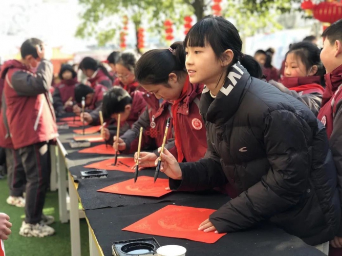 书院文化周第一天上午,孩子们在书法肖伟老师的带领下开展了书法考级、毛笔字“写福送福”书写活动。孩子们认真仔细地书写,横竖撇捺、起笔收笔,将每天练字课所学的本事都展现得淋漓尽致。一个个字迹工整、优美流畅的字呈现在书法纸上,校园里充满了浓郁的墨香味儿。