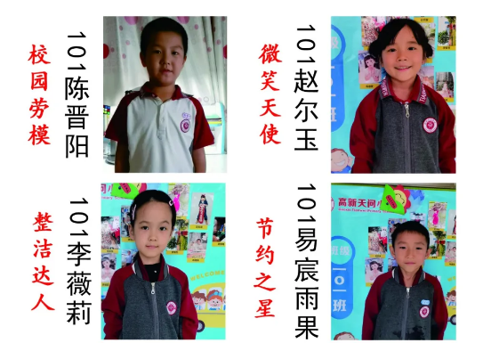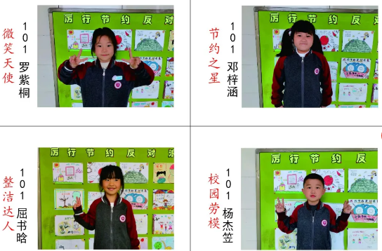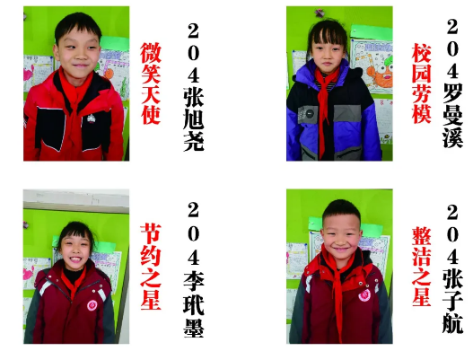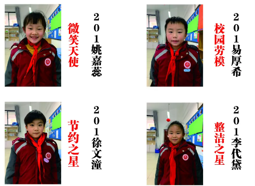 以下为本学期每月校园明星———“节俭之星”“校园劳模”“整洁达人”“微笑天使”。让我们一起领略他们的风采吧: