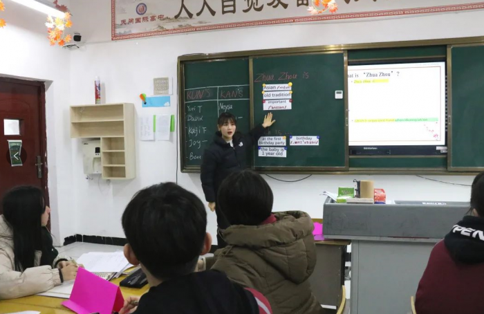 强化英语口语交际,提升学生综合素养。胡佩云老师的雅思口语课选择了极少用英文谈论的中国传统习俗“抓周”为主题,充分运用贴纸板书和计时器等教具,课堂教学生动活泼,采用拍掌和跺脚等新颖方式强化同学们对单词的学习和记忆,调动同学们的学习积极性,提高课堂参与度。