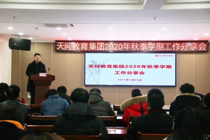 1月26日,天问教育集团召开了秋季学期分享会。会议由天问教育集团董事伍月铭主持,11学部分享了2020年秋季学期工作特色与亮点。