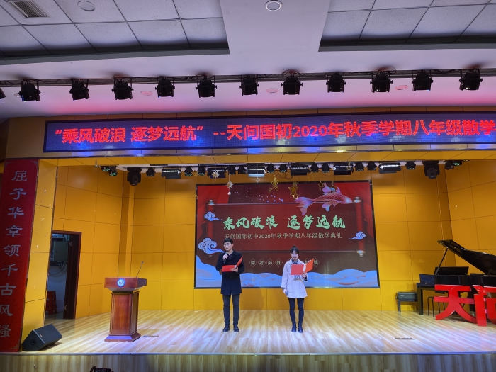 当日,八年级以“乘风破浪 逐梦远航”为主题举行散学典礼。