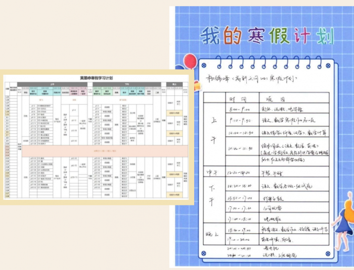 每位同学也结合自身情况,合理规划,拟定了属于自己的寒假计划,做好了假期目标、时间和行动的自我管理。