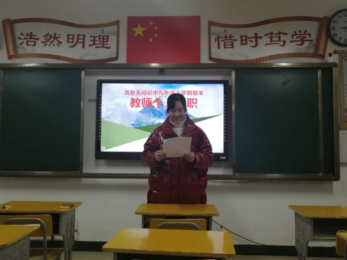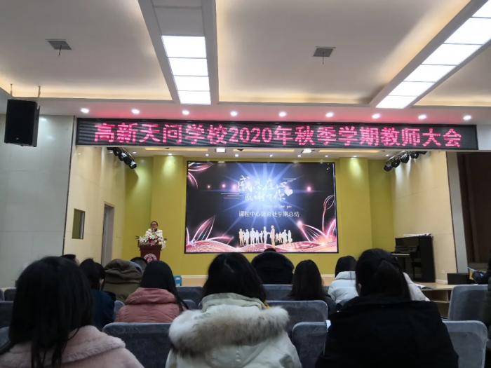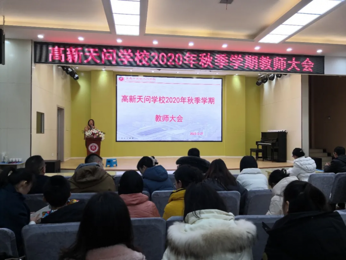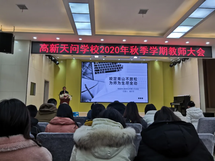 教研组:相伴求知 和谐共进 当天,还召开了2020秋季学期教研工作总结大会,各教研组长分别从日常教学,集体教研、青年教师培养、团队建设,学科组所取得的成绩和存在的不足,对新学期的展望等方面进行汇报,学科组长的回顾与分享各具特色,各有精彩。 教师:辛勤耕耘 收获喜悦 1月25日,高新天问初中全体教师进行了个人述职。老师们分别从工作岗位、工作过程与成绩、经验积累、反思改进等方面总结了本学期的工作。 在教书育人的道路上,老师们辛勤耕耘,付出了汗水与心血,同时也收获了充实与快乐。老师们纷纷表示,将一如既往用心去教诲学生,希望在以后的工作中发扬优点,克服不足,总结经验教训,使教学工作更上一层楼。 1月27日,高新天问初中召开2020年秋季学期教师大会,各部门负责人总结了本学期的工作,展望新学期的目标。 学校课程中心教学副主任杨开平总结汇报,本学期课程中心教学处围绕学期初拟定的计划开展工作,重点突出三个“聚焦”:聚焦过程,聚焦课堂,聚焦教研;落实三个“抓实”:抓实过程、抓实教学、抓实教研,实现师生共同发展。 政教处:春风化雨 润物有声 德育工作是一个学校的灵魂,是学校良好风貌的有力保障。学校课程中心德育副主任向丽华主要从八个方面总结了本学期的工作:培养规则为抓手 良好习惯促成长 ;自主管理上台阶 薪火相传代代新;学校安全无小事 各种举措保平安;缤纷活动展风采 德育阵地处处在;他山之石可攻玉 比赛分享促成长;稳步推进好传统 “完美”标准入人心;家校共育成合力 有效沟通明方向;驻足回首勤反思 昂首阔步新征程。 校务中心:克难奋进 扎实创新 校务中心主任向端总结汇报,本学期校务中心始终围绕开学初提出的“四好”来定位开展:为学校发展做好参谋,为校长工作做好助手,为部门工作做好护航,为同事做好服务。 本学期对照计划,在推进卓越绩效管理、精细办会传达、协调督办、教师研修、招生工作、宣传工作等6个方面,顺利完成了本学期的工作。 后勤处:服务精细 安全可靠 后勤工作也是办学的基石,是教育教学的重要保障。本学期,后勤处服务精细可靠,健全了学校食品安全责任制度;定期学习安全知识提高认识;迎接各级检查情况良好;严格管控食品原材料采购、加工、制作等环节环节、过程;做好各项服务工作,为广大师生员工创设了安全健康的环境。 学校:务实创新 奋勇争先 初中部执行校长廖圣东在总结中说,2020年秋季学期,高新天问初中在集团和上级教育行政部门的领导下,以安定、扎实、坚持、创新;做人踏实、做事扎实、创新落实的集团卓越绩效工作要求,勤奋工作,奋勇争先。 这学期,学校卓越绩效落实到位,对比《2020—2021学年目标责任书》责任目标,学校各项指标均基本完成达成。 常规教学过程扎实,工作紧紧围绕常规落实,学生受益,家长满意等项目开展工作,具体完成事项30余项。 德育活动规划系统,坚持构建自主发展生态氛围,围绕自主发展规划德育主题,继续狠抓行为习惯。 教师团队教研务实,建设一流的教师队伍。打造一批在市区级有一定影响力的研究型教师,在2020年秋季学期中,共有31项教科研成果,26名教师参加区级比赛并获奖,9名教师获宜昌市级优质课奖;师德师风违禁率为0,重大安全事故率为0,上级文件落实率、工作完成率100%。 举首回望,感慨万千; 过去的一学期 高新天问初中全体教职工 心中有爱 ,感恩以待; 心中有梦,励志前行; 心中有光,担当有责 ; 展望新学期,斗志昂扬,未来可期!