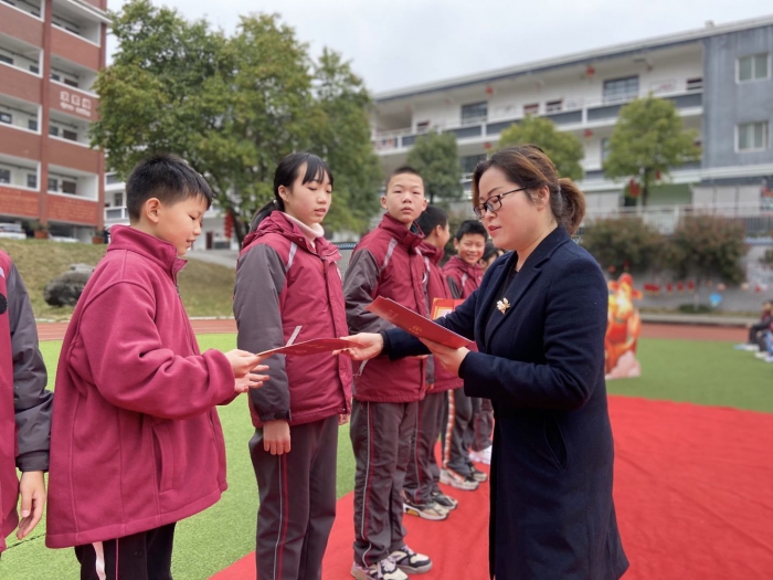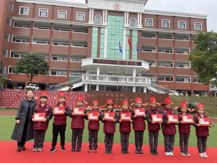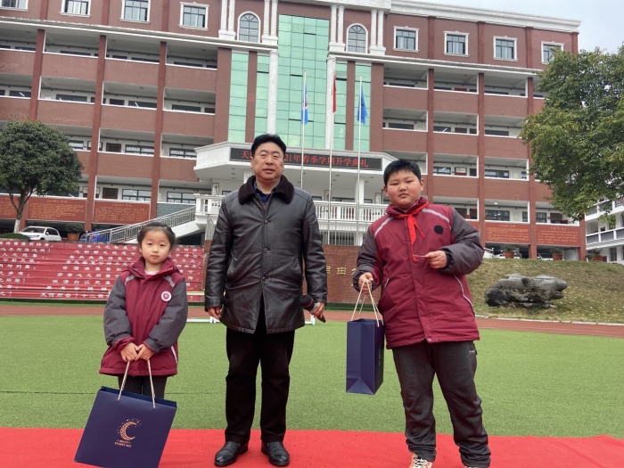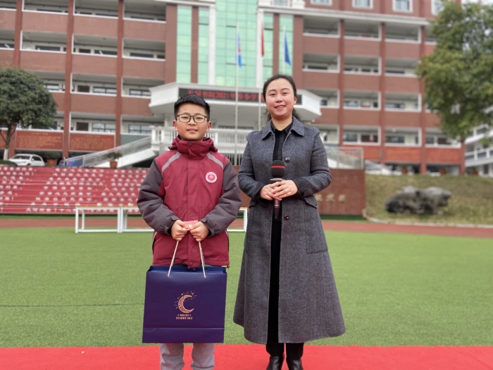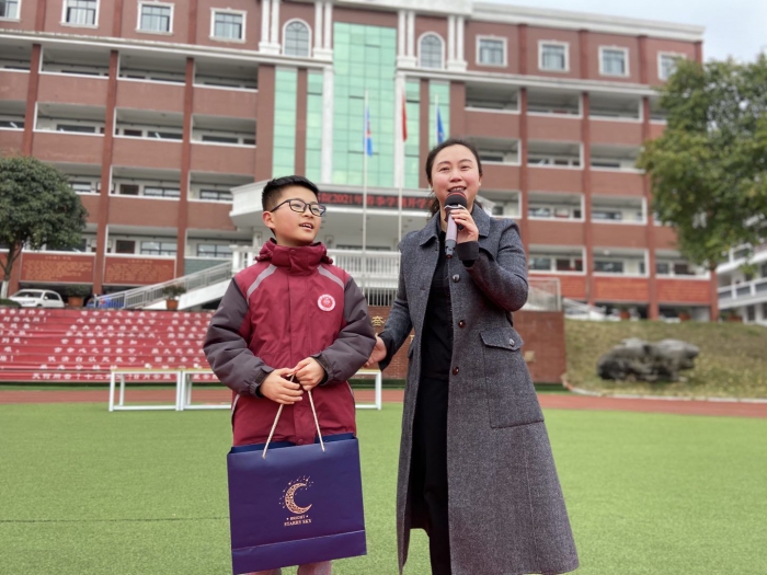 各班班主任为寒假“七彩课程“中涌现出来的””“七彩少年”颁奖,袁淋霖校长和田科蓉主任为秋季学期表现优异的学生颁发奖学金,佩戴状元帽。一阵阵热烈的掌声,一张张自豪的笑脸,一个个自信的身影......他们用努力拼搏证明了自己的实力,用勤奋刻苦书写着奋斗的岁月。