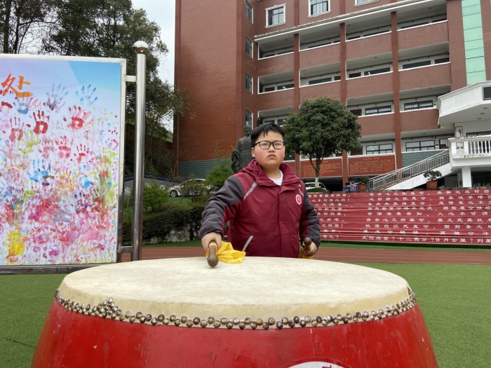 601班同学带领全校师生共同表演舞蹈《天天向上》,一蹦一跳神形兼备朝气蓬勃;各年段在鼓声中吟诵着“爆竹声中一岁除,春风送暖入屠苏”“春种一粒粟,秋收万颗子”,鼓声是开始更是奋进,让我们努力学习立德修身,在知识的海洋中乘风破浪。
