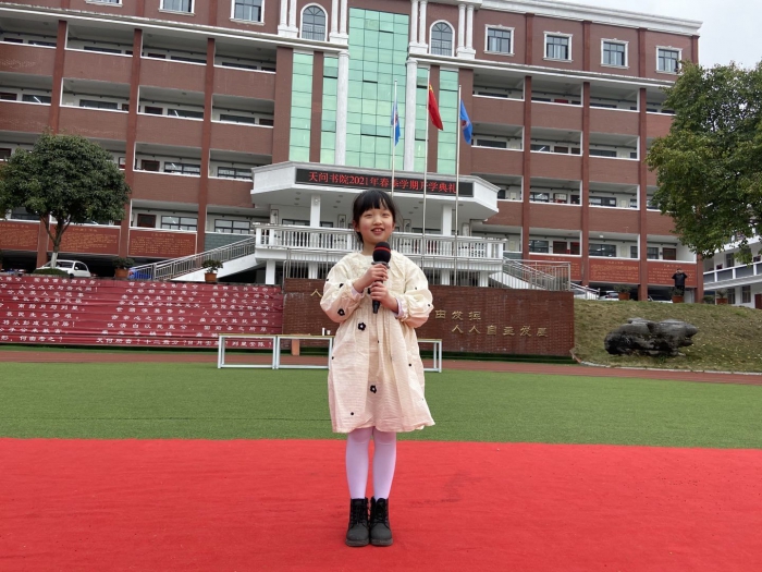 瞧,302班谭沫暄同学迈着轻盈的脚步,用稚气纯真的童声歌唱着经典儿歌《春天在哪里》,天问书院小学2021年春季学期开学典礼就此拉开帷幕。