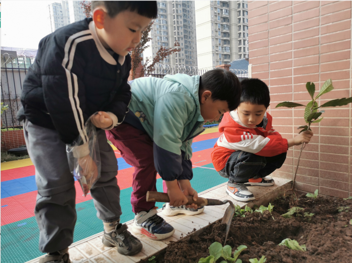 点军天问幼儿园探寻B班的小朋友带来了小种子和小树苗,孩子们兴高采烈地开始实施自己的播种计划,松一松土,挖个小坑,把种子埋起来。再浇点水,期待小种子赶快发芽长大。孩子们还是种树小达人,叫上伙伴,带上工具,种下一棵树,等待它成长。
