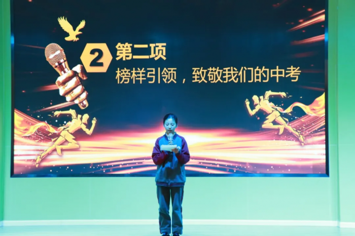 九年级张彬夷在会上做了分享发言。站在一百天的节点上,她将和全体同学一起惜时上进,分秒必争!勤学苦练,静心沉淀!强身健体,磨练意志!调整心态,戒骄戒躁,再创辉煌!