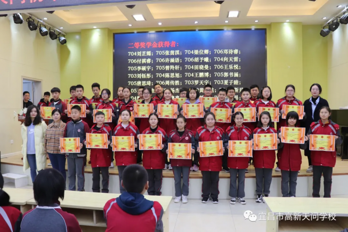 3月17日,高新天问初中七年级师生隆重集会,举行2021年春季学期七年级奖学金颁奖仪式,120名学生分别拿到了3000元和5000元的奖学金。