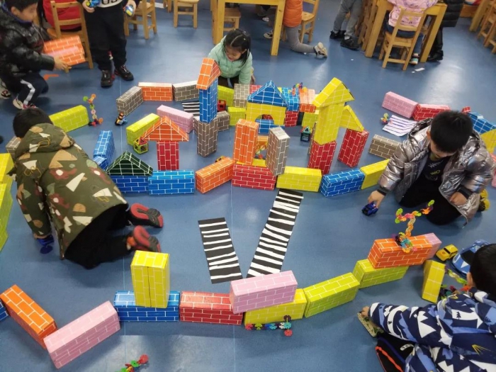 于是,孩子们萌生了想在建构区搭建--从我家到幼儿园这条路的想法。