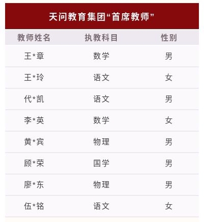 如今,天问教师力量已经得到业内专业人士一致认可。上述数据及名单已经证明了,天问名师团队的锻造过程和阵容的强大。这是天问持续发展的根本力量!