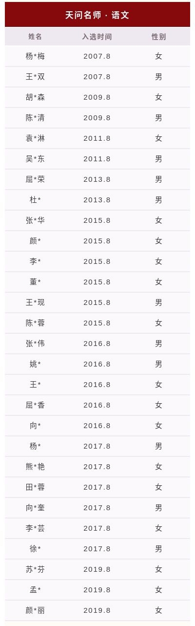 除以上“首席教师”“天问名师”之外,还有147位“天问准名师”以及一大批从天问成长起来的优秀青年教师,在此就不逐一列举了。