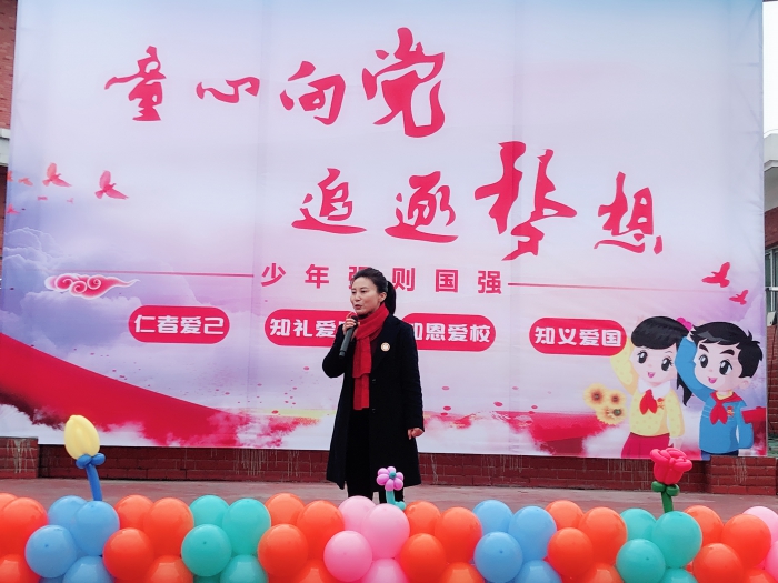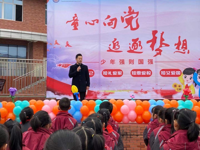 由党员代表杨军老师向全体师生发出《纪念建党100周年倡议书》,倡议全体党员以更优的作风服务学生、家长,全体教师以更大的激情奉献教育事业,全体少先队员和全体同学以更高的热情投入学习。