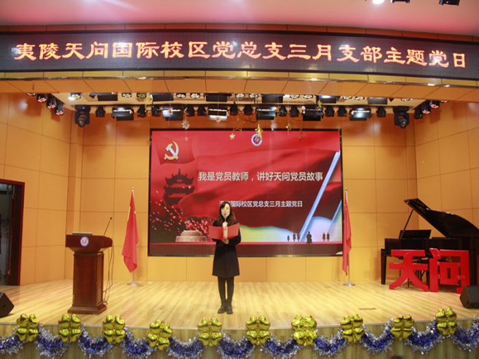 4月1日,天问国际校区党总支全体党员、天问高中高一全体学生齐聚一堂,共同参加主题为“我是党员教师,讲好天问党员故事”支部主题党日活动,5名优秀的女党员教师代表走到台前,分享学校教育教学中生动感人的教育案例。