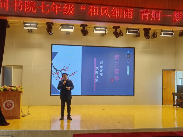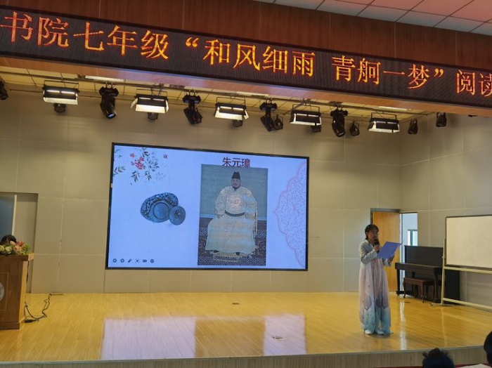 阳春二三月,草与水同色,如约而至的不仅仅是草长莺飞的美好,还有充满书香的分享。天问书院初中七年级于2021年3月19日举办“和风细雨,青舸一梦”阅读分享大会。十二个节目,在师生的携手演绎下为全体七年级师生带来一场视听盛宴。教学处及初中语文组代表担任活动评委。