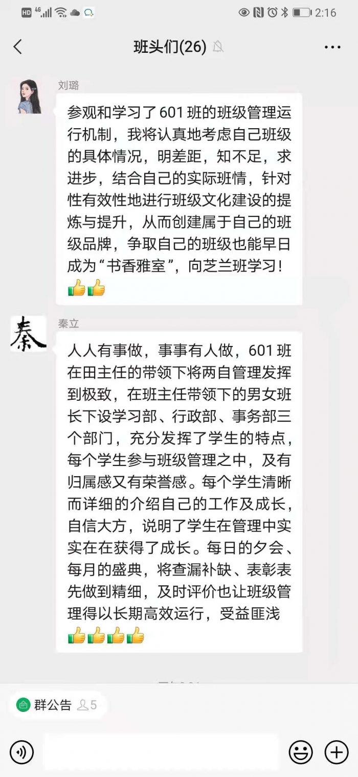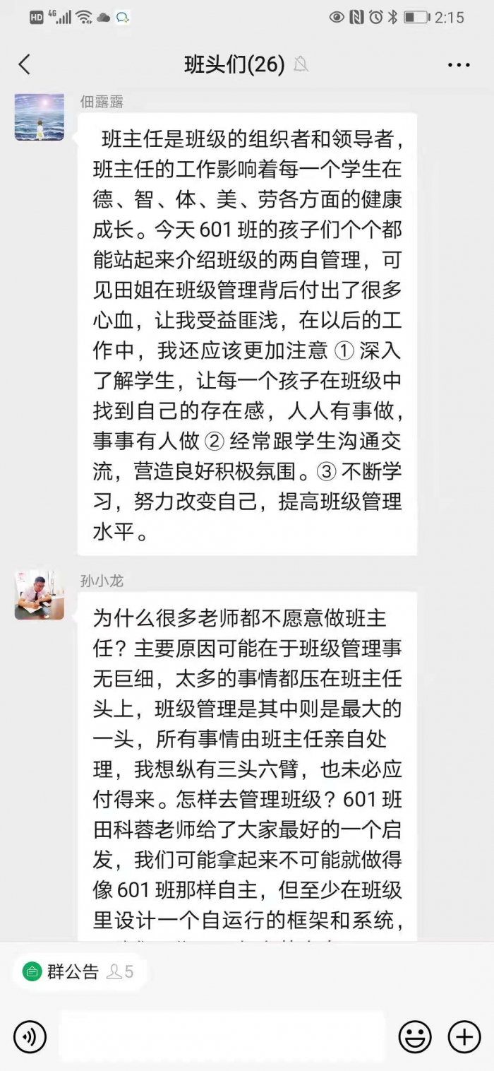 活动后,各班主任老师纷纷分享自己的会后感受,老师们表示一定努力学习班级文化建设,把班级文化文明素养内化于心、外化于行,真正让班级、让教室成为学生成长的家园。
