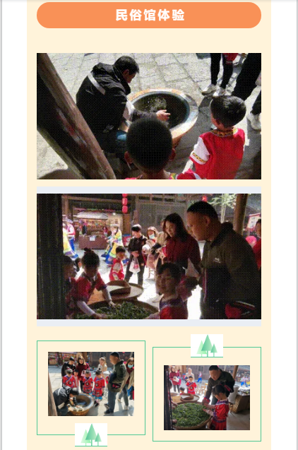 走进老街,浓缩的土家民俗馆瞬间吸引了孩子们的注意力。纺线织布、车水打夯、炒茶制茶、碾麻造纸等农家体验馆,让孩子们感受着不一样的家乡文化。