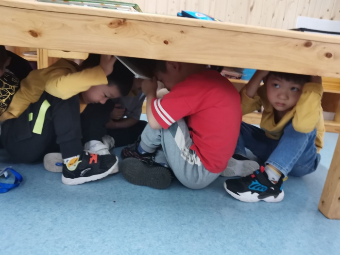 今年5月12日是我国第13个防灾减灾日,为了进一步提高全园幼儿的地震减灾意识和对突发事件的灵活应变能力,有效掌握避险、逃生和自救自护的方法,点军天问幼儿园进行了“防震减灾演练活动”。演练前各班先进行了防震知识进课堂的宣传教育活动,让幼儿熟悉、学习并练习应急避震和安全疏散的方法。随着警报铃声响起,教师指导幼儿有序的进行避险,然后迅速撤离。整个过程快、静、有序,全园400多名幼儿安全快速的到达指定区域。