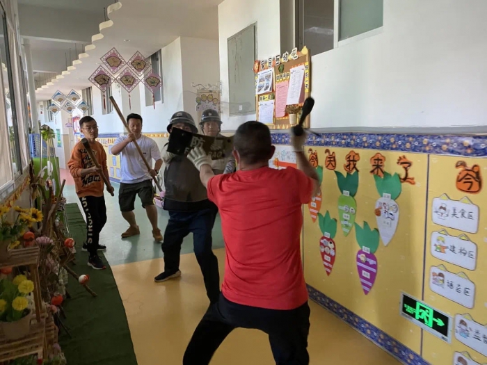 为了使全园师生进一步重视校园暴力、非法侵入事件应对的行动步骤,明确各自的分工任务与职责,提高教职工防范、自救、合作意识,使全体教职员工树立确保幼儿不受伤害、公共财产不受损失的观念,根据幼儿园实际情况并结合有关部门法律法规,5月8日上午,天问国际幼儿园开展了防暴力伤害事件应急演练活动。