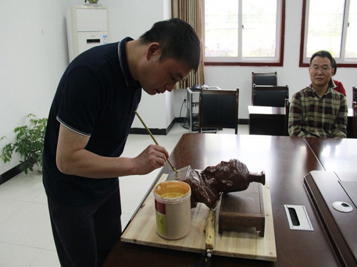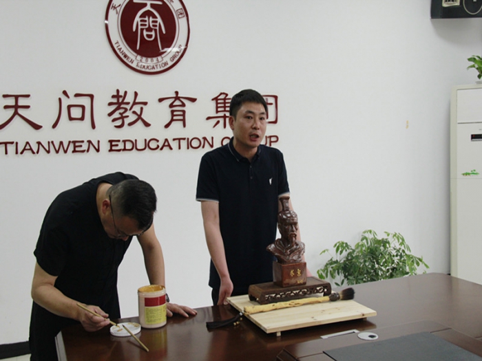 年级主任董超老师首先提笔在塑像上写上他的祝福:金榜题名。科任老师们也纷纷署名,共同表达了和同学们共同战斗到最后的决心。最后,同学们在塑像上按上自己的指印,表达了誓创佳绩的勇气和信心。