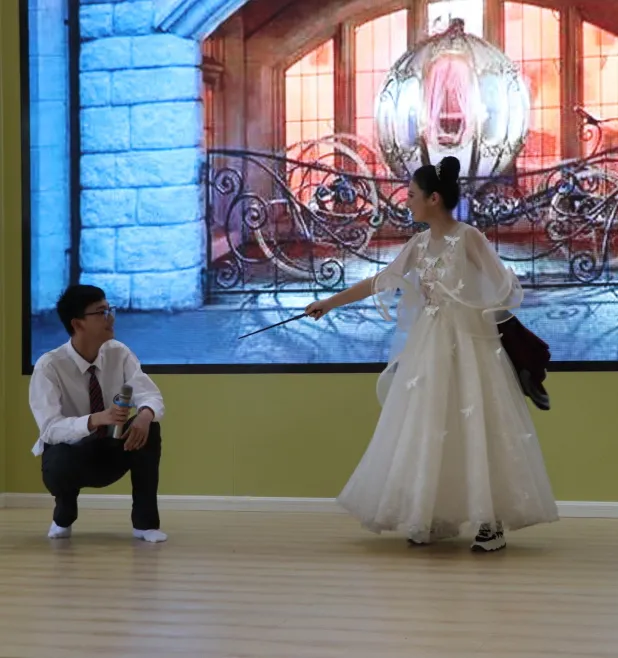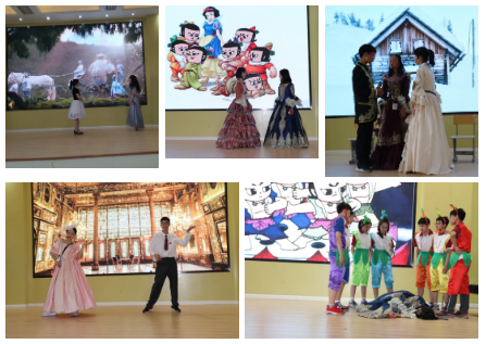 每个班精心挑选一支队伍在英语老师的指导下,立足教材、精心编排,将《白雪公主》、《灰姑娘》等童话、寓言改编成英语短剧,配合音乐、舞蹈、多媒体等辅助手段,把静态故事演绎成动态场景,展现出英语表演的独特魅力。