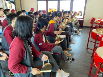 在这里,孩子们在老师的指导下学习打鼓、打镲,了解了民族乐器的演奏方法;亲自体验了用传统的石磨磨玉米浆,将磨好的玉米浆现场煎成金黄的玉米饼。孩子们吃着香甜的玉米饼,幸福的笑容绽放在脸上。