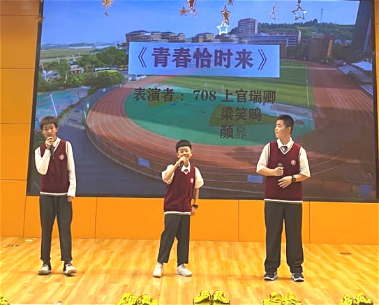 《2035是这young》《红旗飘飘》《我的祖国》《青春恰时来》《门口在过兵》《少年》……一首首洋溢着红色激情与青春气息的歌曲唱响在同学们耳畔,更唱响在了大家心头。让同学们深感祖国的伟大、党的伟大,坚定了要为祖国的繁荣富强和中国梦的实现努力学习、担负使命的决心。