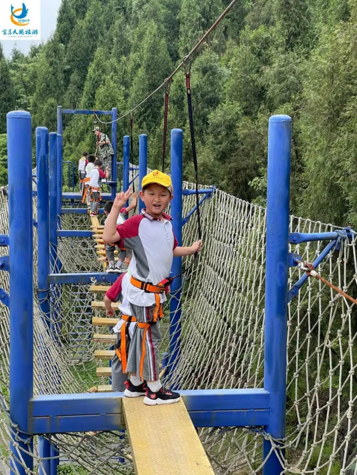 到达新领地三峡艺术园后,本次活动正式开始。别开生面的开营仪式为活动的展开奠定了良好基调。开营仪式结束后,各班有序的分组进行了低空挑战、重走长征路及其他营地合适的项目。
